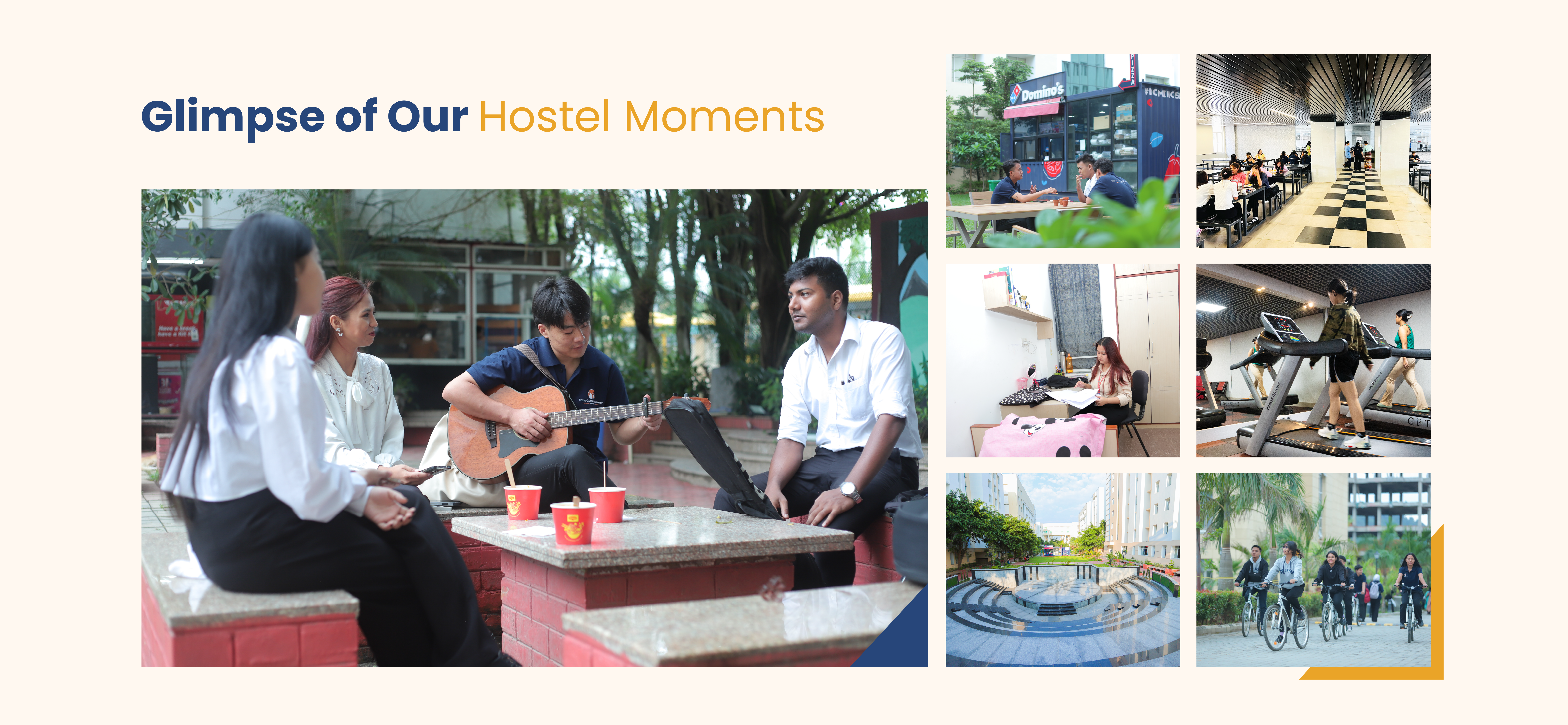The residence halls at Royal Global University are designed to enhance the educational experience by providing students with the comfort and convenience they need to thrive. Nestled within an eco-friendly, green campus, the separate in-house hostels for boys and girls are thoughtfully equipped to support both mental and physical well-being. With a nurturing environment that encourages personal growth, the hostels ensure that every boarder makes the most of their time on campus. Their close proximity to academic buildings fosters continuous interaction between students and faculty members, even during vacations and holidays. Centrally air-conditioned and beautifully clustered, the hostels offer ample opportunities to unwind, connect, and create lasting memories with friends.